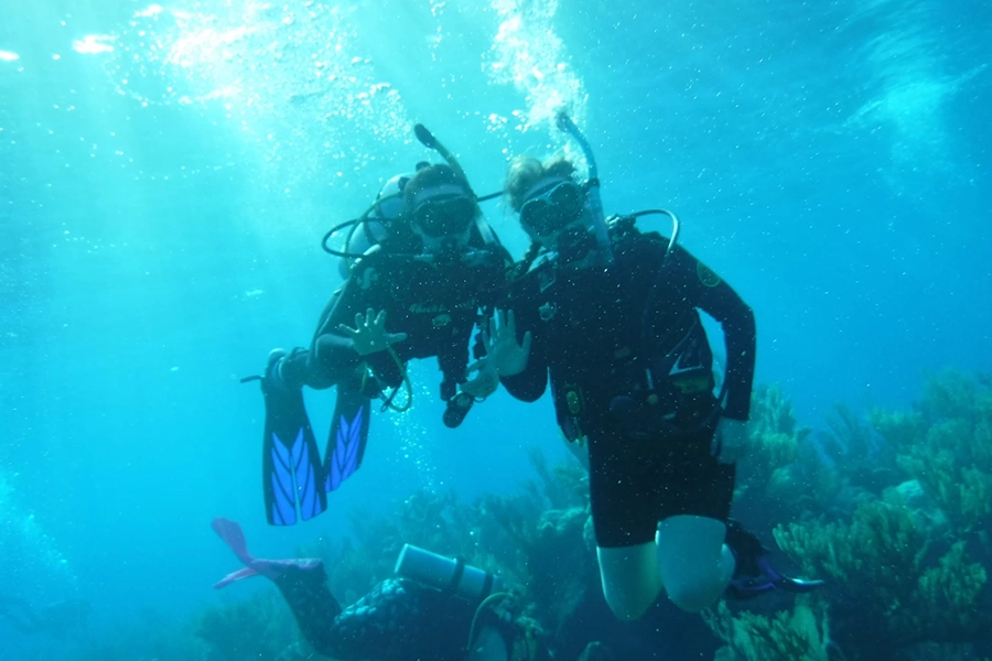 As part of the course, Peyton and her classmates scuba dived to collect data and footage for their presentations and documentaries. They completed three to four dives each day. To supplement the course, they also occasionally had assignments from the marine biology textbook.